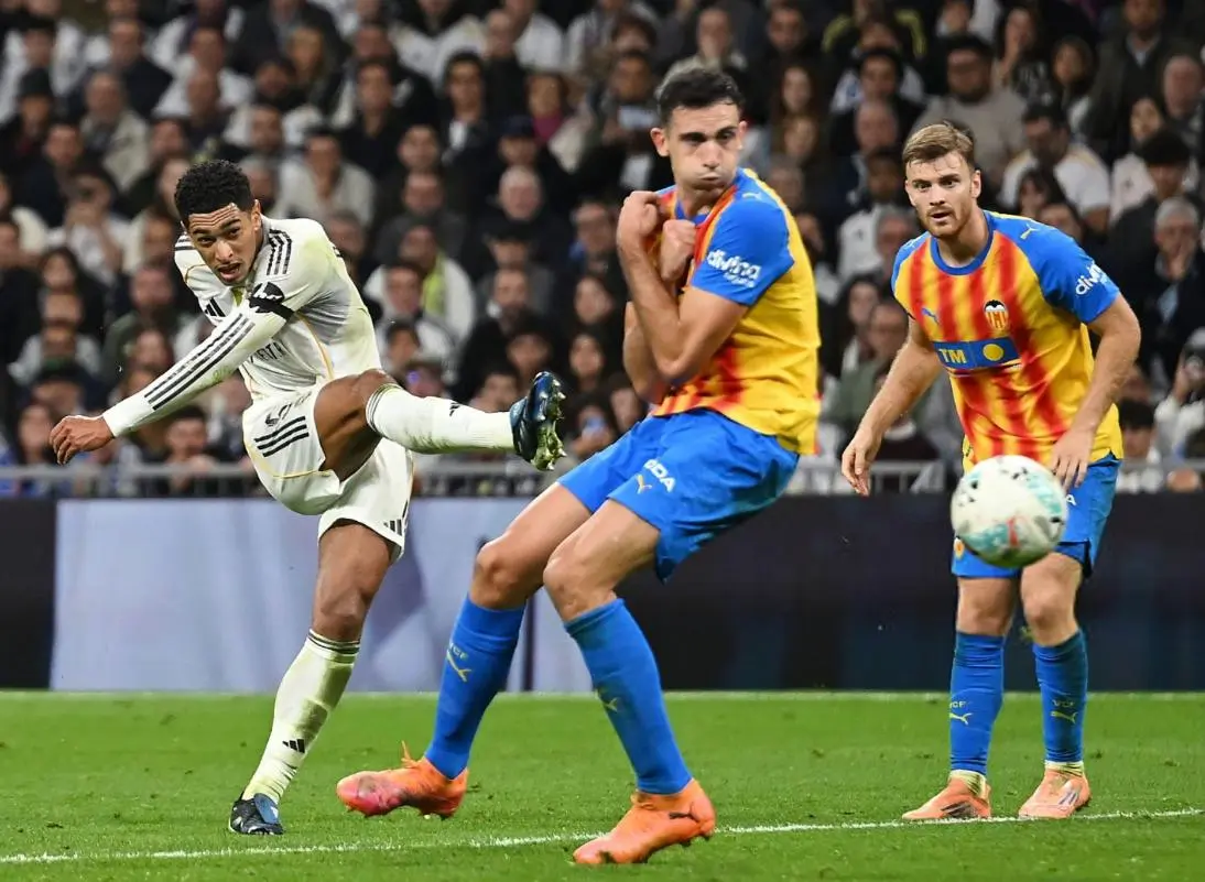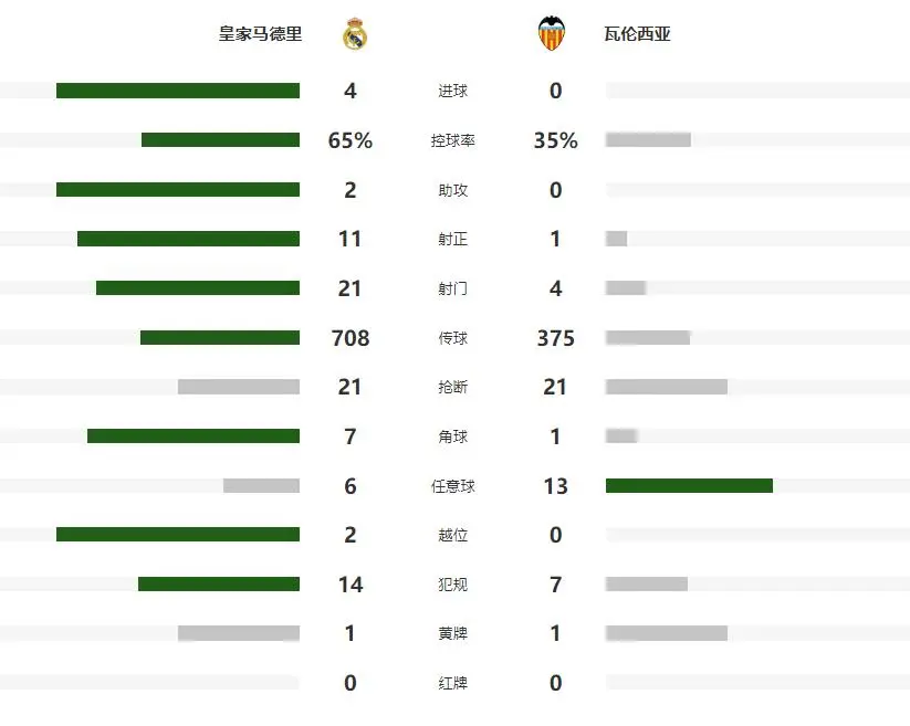 第42分钟卡雷拉斯杀到瓦伦西亚禁区被放倒,又为球队赢得一粒点球,可惜维尼修斯的点射角度太正被封堵,不过半场比赛结束之前,皇马还是扩大了领先,贝林厄姆左路内切后直接兜射远角,帮助皇马带着3球领先,回到了更衣室。