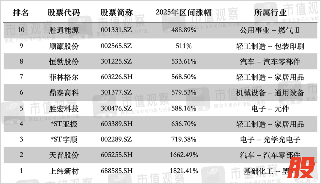 上纬新材就是最佳答案,在人形机器人资产注入的预期之下,公司股票连续暴涨,年内飙升1821.41%,成为2025年当之无愧的“涨幅王”。
