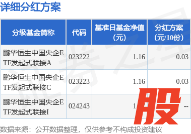 本站消息,12月8日发布《鹏华基金管理有限公司关于鹏华恒生中国央企交易型开放式指数证券投资基金发起式联接基金2025年第6次分红公告》。本次分红为2025年第6次分红。公告显示,本次分红的收益分配基准日为11月11日,详细分红方案如下: